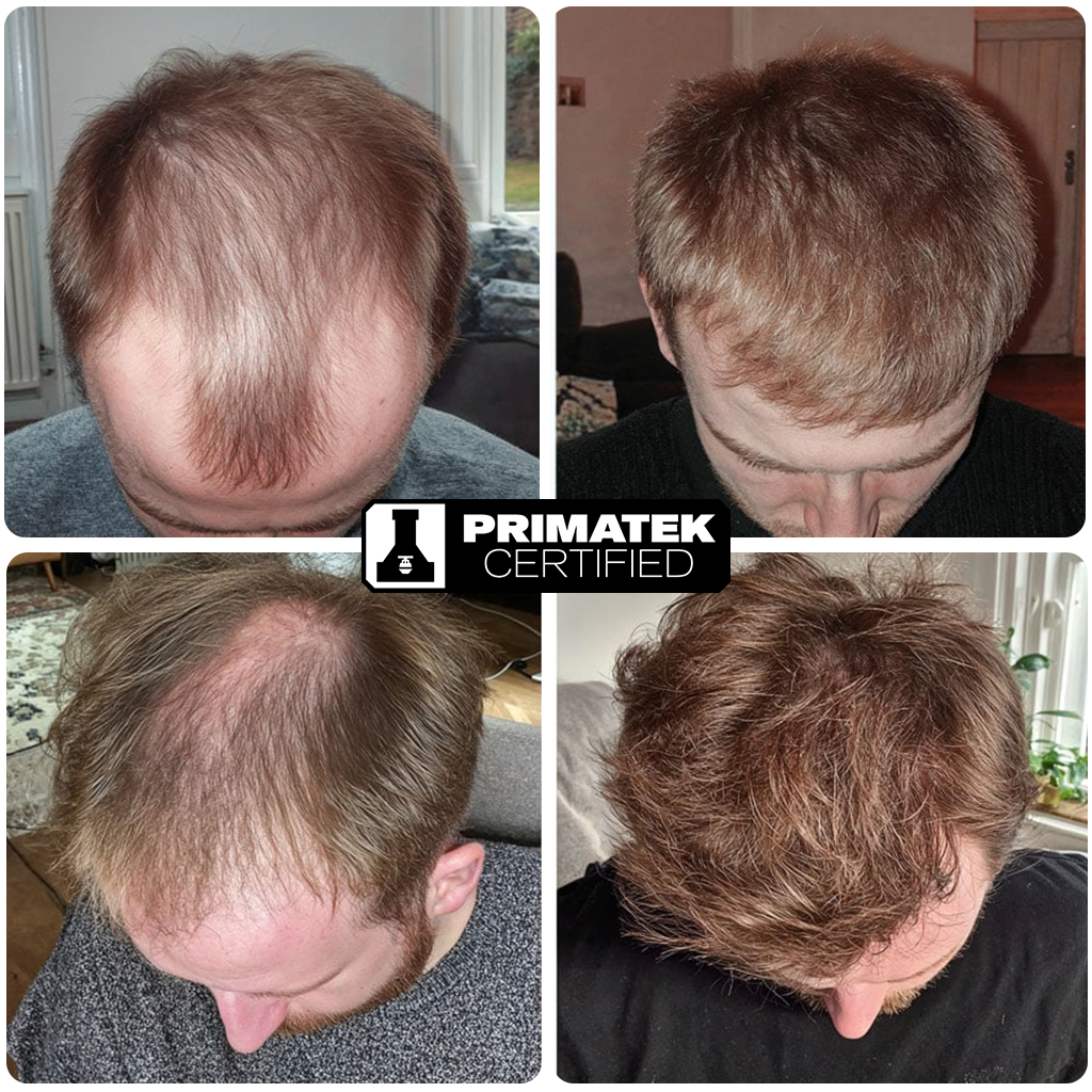 Essayez PRIMATEK REVOLUTION pendant 100 jours complets. Suivez simplement le protocole hebdomadaire. Si, en vous regardant dans le miroir, vous ne constatez pas une amélioration tangible et visible dans l'apparence et la densité de vos cheveux, nous ne souhaitons pas conserver votre argent.